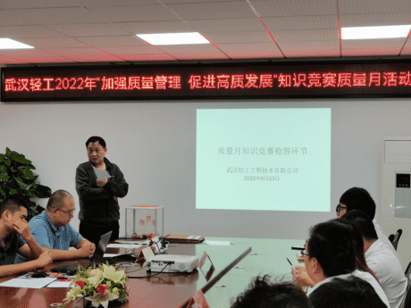 為貫徹落實(shí)湖北省住房和城鄉(xiāng)建設(shè)廳《關(guān)于組織開(kāi)展2022年“質(zhì)量月“活動(dòng)的通知》廳頭[2022]1793號(hào)文的精神、武漢建筑業(yè)協(xié)會(huì)建筑檢測(cè)分會(huì)《關(guān)于開(kāi)展2022年“質(zhì)量月”活動(dòng)的通知》精神、為促進(jìn)工程質(zhì)量不斷提升,營(yíng)造我公司“質(zhì)量至上”的良好氛圍,樹(shù)立質(zhì)量第一的理念意識(shí),我公司以“質(zhì)量月”為契機(jī),根據(jù)本公司發(fā)展需求,為規(guī)范管理,以實(shí)際行動(dòng)迎接黨的二十大勝利召開(kāi),將質(zhì)量管理活動(dòng)抓實(shí)抓牢,強(qiáng)調(diào)履職盡責(zé),為公司平穩(wěn)有序發(fā)展打下堅(jiān)實(shí)基礎(chǔ)。武漢輕工工程技術(shù)有限公司(以下簡(jiǎn)稱(chēng)武漢輕工)于2022年9月23日組織開(kāi)展了“武漢輕工2022年加強(qiáng)質(zhì)量管理促進(jìn)高質(zhì)發(fā)展”知識(shí)競(jìng)賽質(zhì)量月活動(dòng)。